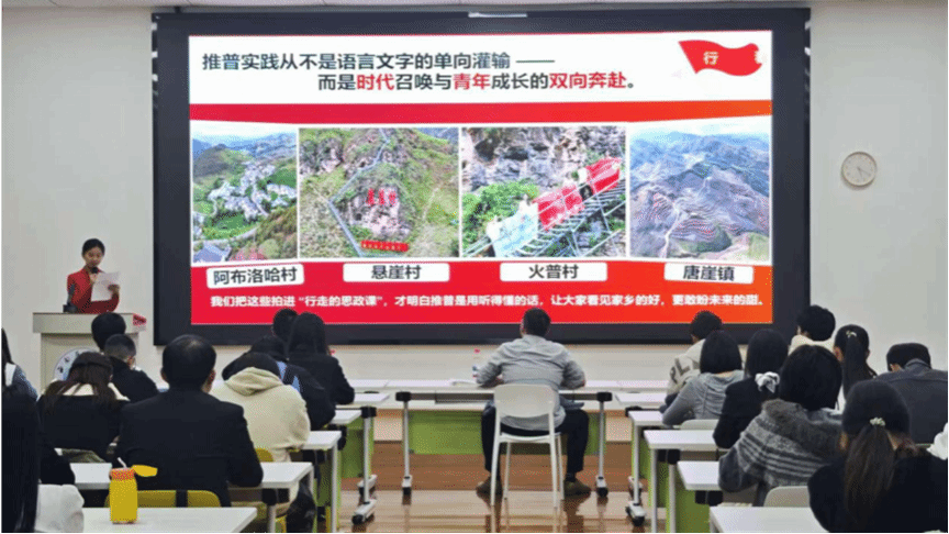 在本次暑期 “三下乡” 社会实践成果展示活动中,学校遴选出 19 支 “青年红色筑梦之旅” 实践队伍参与最终汇报。助学励志 “育在色达” 支教队响应国家 “西部计划” 号召,在甘孜州色达县开展 教育帮扶。掷地有声暑期社会实践队赴金堂县多所农家书屋开展 “乡村伴读・微光计划”,在实践中赓续红色血脉,展现新时代地质青年担当。“普通用语,绘同心圆” 推普助教团在多省少数民族聚居地设推普基地。“我们不仅是红色故事的倾听者,更是传承者”,19 支实践团队以走进基层、服务社会的实际行动,让青春在祖国最需要的地方绽放光彩,充分体现了实践育人的价值。