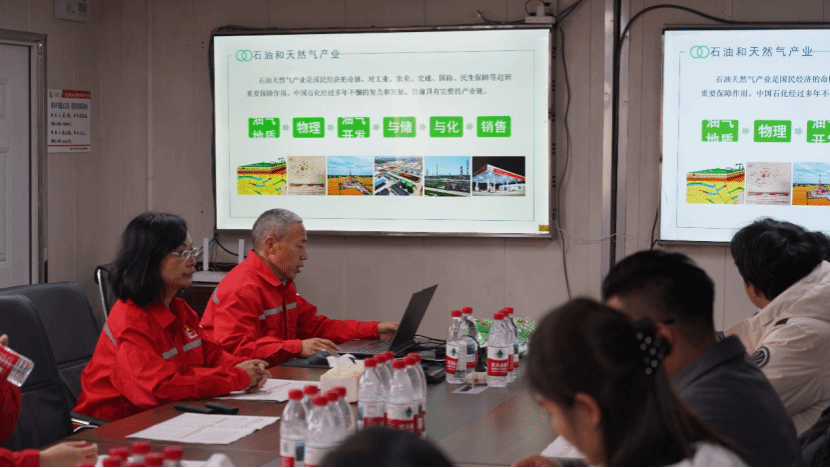 抵达钻井现场后,油田技术人员为师生们开展了专题培训,详细讲解了钻井设备的工作原理、油气开采的核心流程以及油田安全生产的相关规范,让同学们对石油行业有了系统性的认知。在技术人员的引导下,师生们实地参观了钻井平台、中控室等关键区域,近距离观察钻井机的运作过程,感受油田工人不畏艰辛、精益求精的“铁人精神”。同学们纷纷拿出设备记录现场场景,将钻井设备的机械美感、油田工人的奋斗身影转化为创作素材。