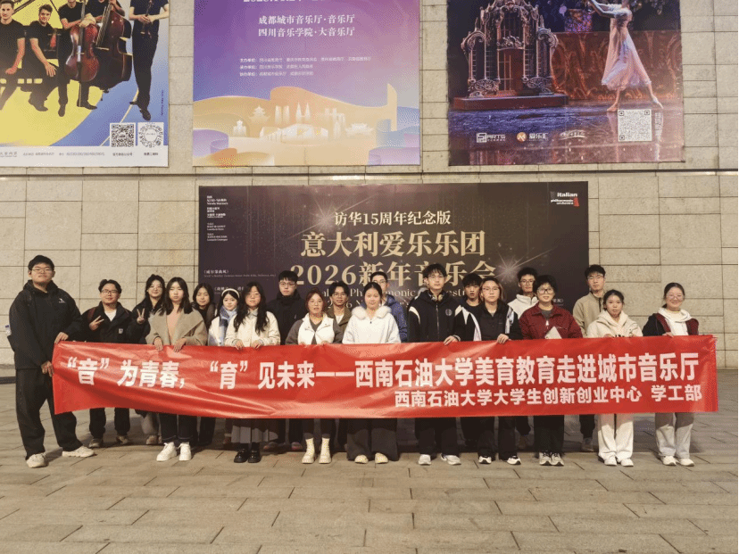 为进一步推进美育教育工作,丰富大学生精神文化生活,2025年11月26日晚,大学生创新创业中心与学生工作部共同组织优秀学生干部代表,前往成都城市音乐厅观摩“城市音乐会”演出。