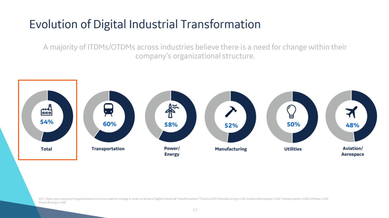 即便处在不同的行业中,大多数ITDMs/OTDMs还是一致认为,公司的组织结构需要改变。
