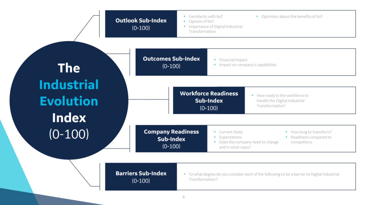 IIoT具有巨大的潜力,所有利益相关者都有机会参与其中。但是对他们来说,还需要更多的了解什么是IIoT、IIoT能为他们带来什么以及如何找出一条成功通往IIoT的途径?该报告在深入探访了250家企业的决策者对IIoT的看法之后,给出了五个细分指数,即: