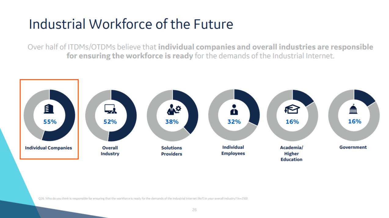 超过半数的ITDMs/OTDMs认为,在确保劳动力已经为IIoT的需求做准备方面,无论是企业,还是整个行业都是负责任的。
