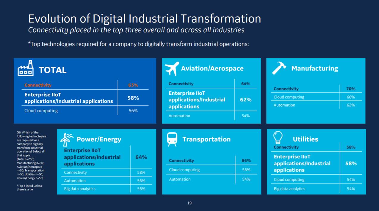 整体行业:连接技术、IIoT应用程序/工业应用、云计算