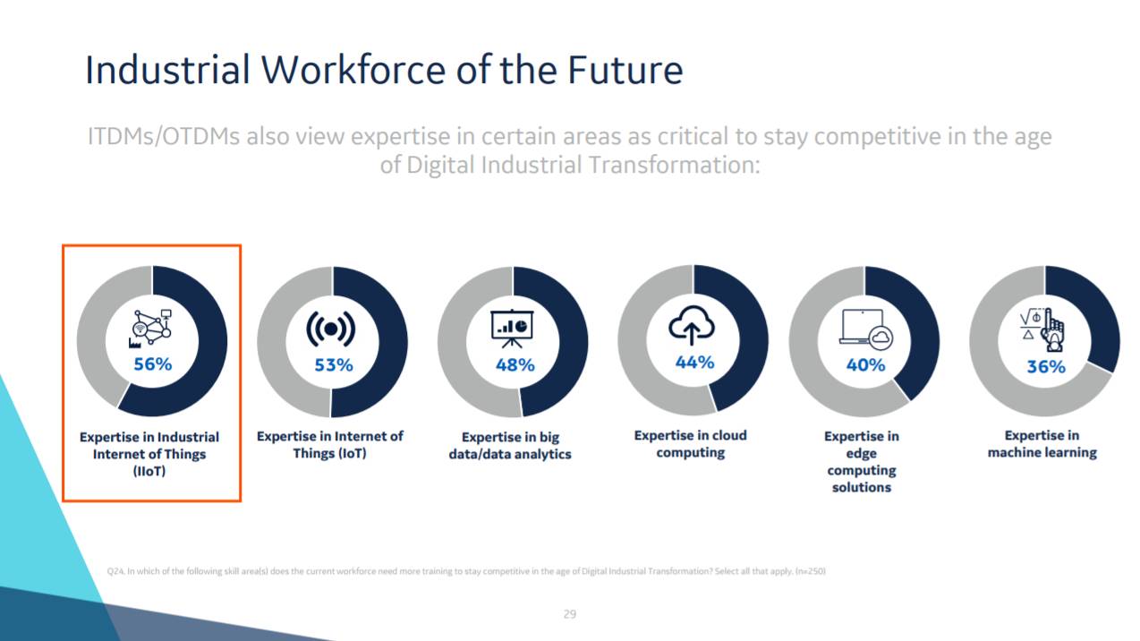 此外,在数字化转型时代依旧保持竞争力是至关重要的,包括:拥有IIoT、物联网、大数据/大数据分析、云计算、边缘计算及机器学习相关的专业知识。