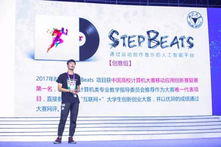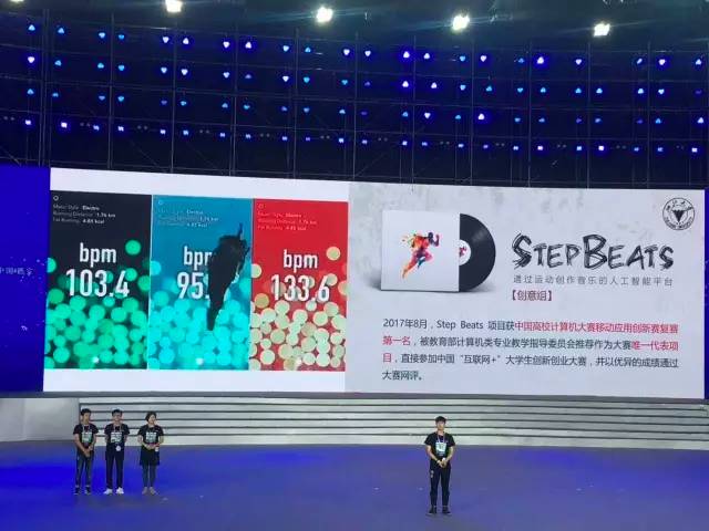 StepBeats—运动创作音乐AI平台 Step Beats项目获中国高校计算机大赛移动应用创新赛复赛第一名,被教育部计算机类专业教学指导委员会推荐作为大赛唯一代表项目,直接参加“互联网+”大赛全国总决赛,是本次大赛中最为年轻的团队,平均年龄只有21岁。