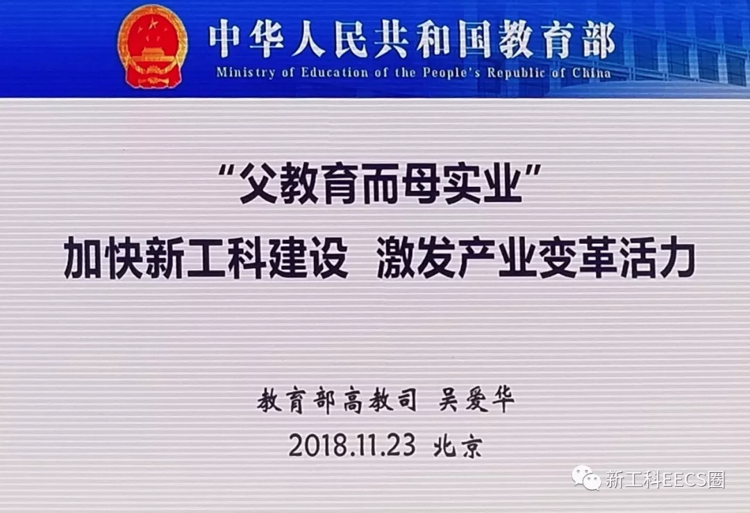 11月23日,教育部产学合作协同育人项目第5次对接会在北京会议中心隆重举行,教育部高教司理工处处长吴爱华做了题为《“父教育而母实业”加快新工科建设,激发产业变革活力》的报告。