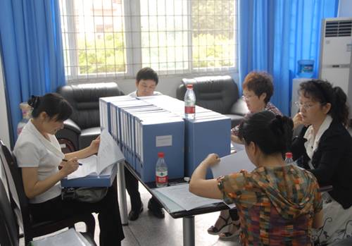 按照议程安排,上午8:00-10:00,由省档案局副局长周书生、省教育厅副巡视员杨成林、省档案局经济科技档案处处长林红、副处长王晓瑜、省教育厅办公室副主任赵晓玲、副调研员廖淑娟组成的认定组首先到档案馆按照听汇报、到库房查档案实体、看支撑材料、质询有关问题、综合评议等程序及考评标准,对我校档案工作的组织管理、基础设施设备、基础业务建设和开发利用等四个方面的内容进行了严格细致的检查和评估,并形成认定意见。