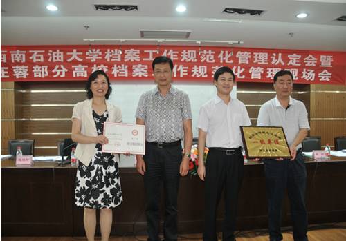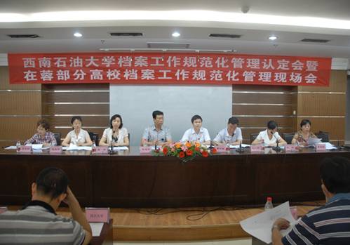 2012年6月19日上午,西南石油大学档案工作规范化管理认定会暨在蓉部分高校档案工作规范化管理现场会在我校导学楼212会议室召开,省档案局和省教育厅有关领导及认定组专家、西南石油大学有关校领导、在蓉十九所高校代表、我校各二级单位档案工作负责人及兼职档案员、档案馆全体员工出席会议。