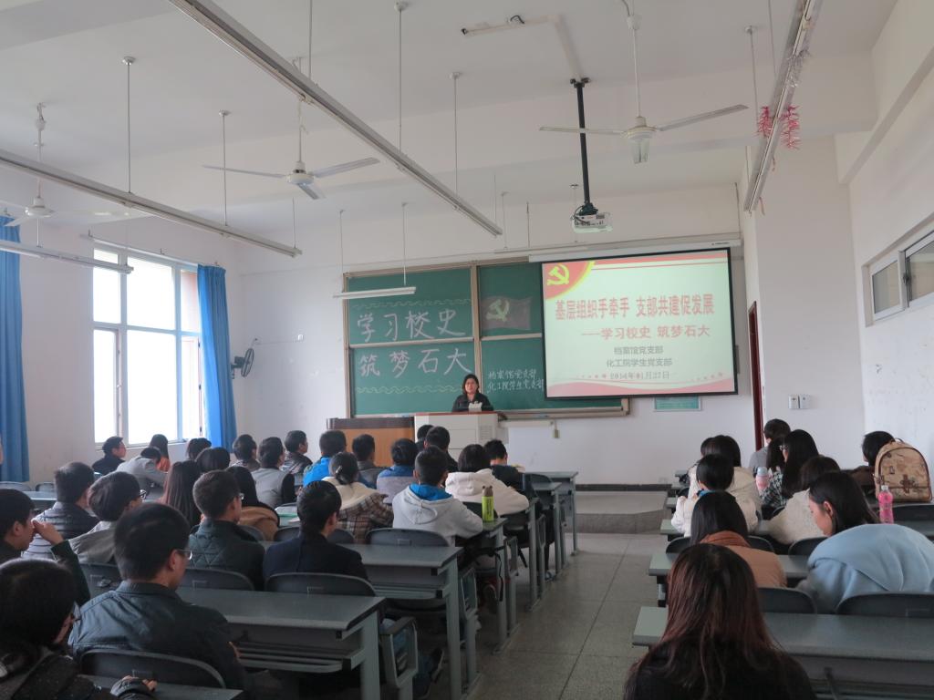 档案馆副处级调研员罗杰老师用详实的数字、生动的案例生动讲述了学校近60年的发展历程等,激发广大学生爱学校、爱学习的热情。化工院学生党员刘圆分享了自己大一到读研二的学习、生活、工作中的点滴。