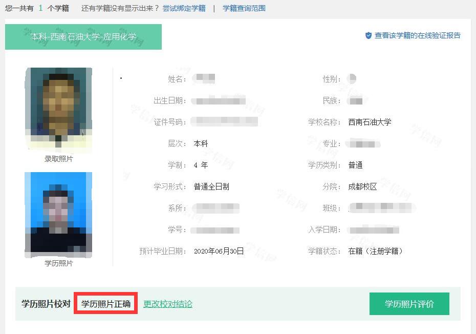 2.如发现除学历照片以外的个人基本信息有误,请及时与教务处学籍管理科联系,联系电话028-83035456,联系人张老师。
