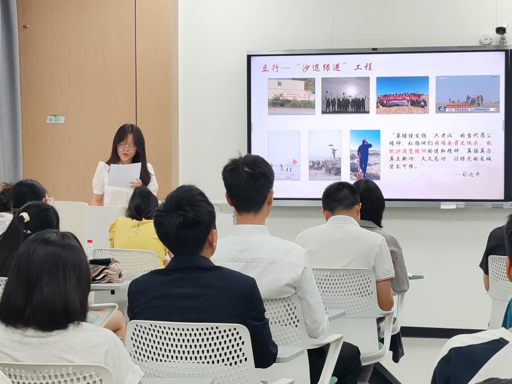 李雯以“立德、立学、立身、立行”为纲,回顾了从入党积极分子到优秀党员的蜕变历程。综测排名第一、推免本校深造的学术成绩,与西北治沙公益中种下千株梭梭树的行动交相辉映。“‘沙漠变绿洲’不仅是口号,更是我们向自然的庄严承诺!”