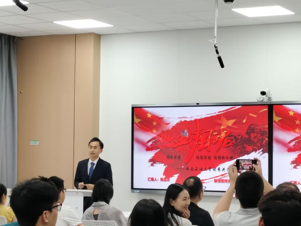 “强军兴国,责任相传!我将以战士之姿守护山河无恙!”紧随其后的羌族党员陈显东,用“戎装绿、天使白、志愿红”三色描绘了自己的青春底色。幼年经历汶川地震的他,动情回忆道:“是军人和志愿者给了我第二次生命,从此我立誓报效祖国。”凭借三学年绩点综测双第一的优异成绩,他带领寝室全员斩获学科竞赛奖项。“如今保研到国防科技大学,成为一名准少尉军官,在未来努力去践行一代又一代石大人的使命。”他坚定地表示。