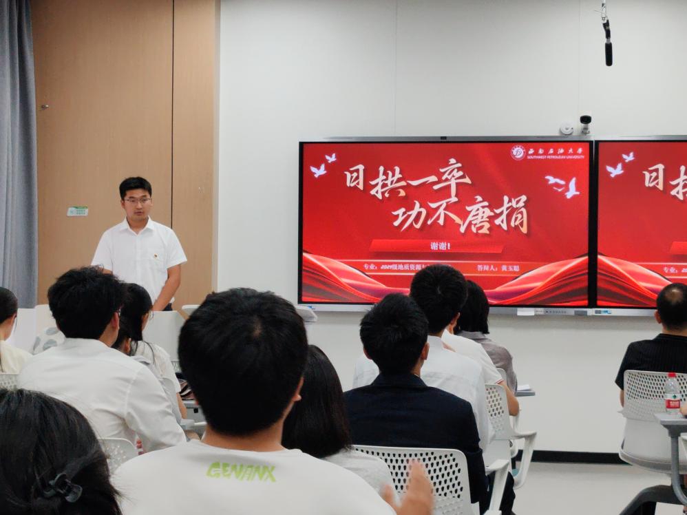从页岩气田实验室到西北治沙林地,从学科竞赛赛场到社区服务一线……5月22日,地科院各学生党支部七位优秀学生党员候选人参与“优秀共产党员答辩会”,书写自己的“红色答卷”。地科院党委副书记、纪委书记张勇,教职工党支部书记代表、学生党支部书记代表、支部学生代表现场观摩。