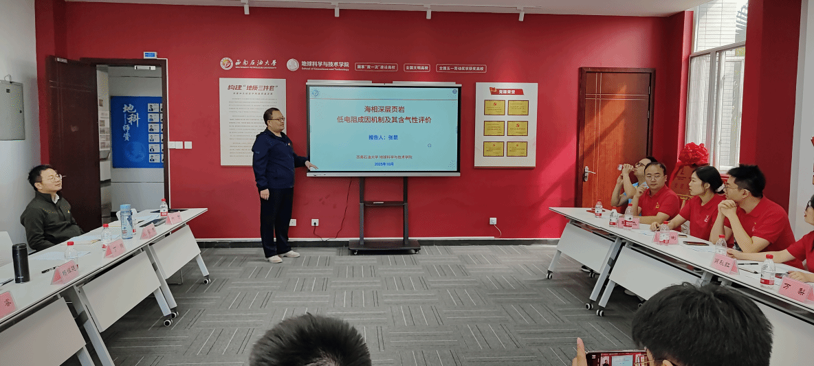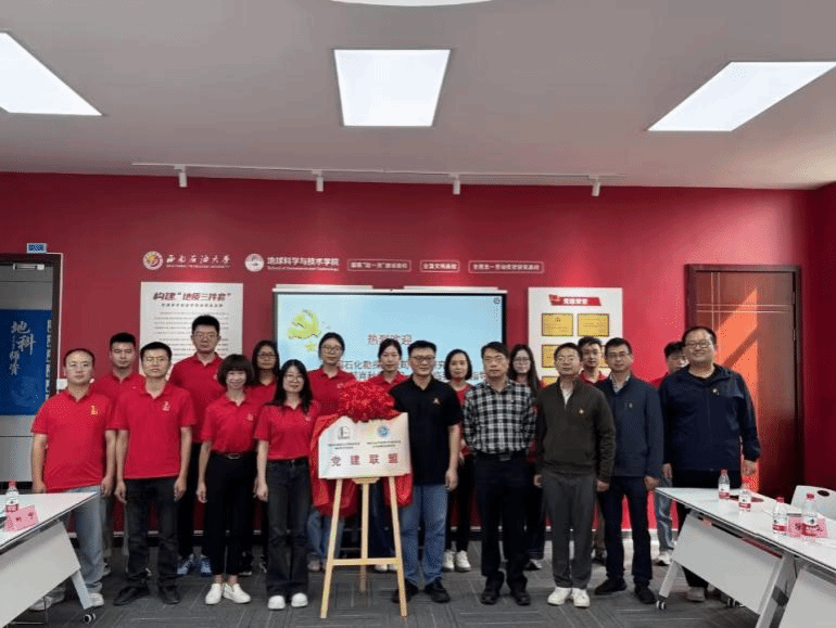 我院油气地质教研室党支部积极探索新时代基层党支部建设,在学院党委领导指导下、勘探分公司研究院党委领导大力支持下,油气地质教研室党支部与中石化勘探分公司研究院海相页岩气党支部进行多次深入交流,最终确立开展共建合作、建立党建联盟,并于2025年10月13日在明辨楼A312隆重举行了“党建联盟挂牌仪式暨学术交流会”。