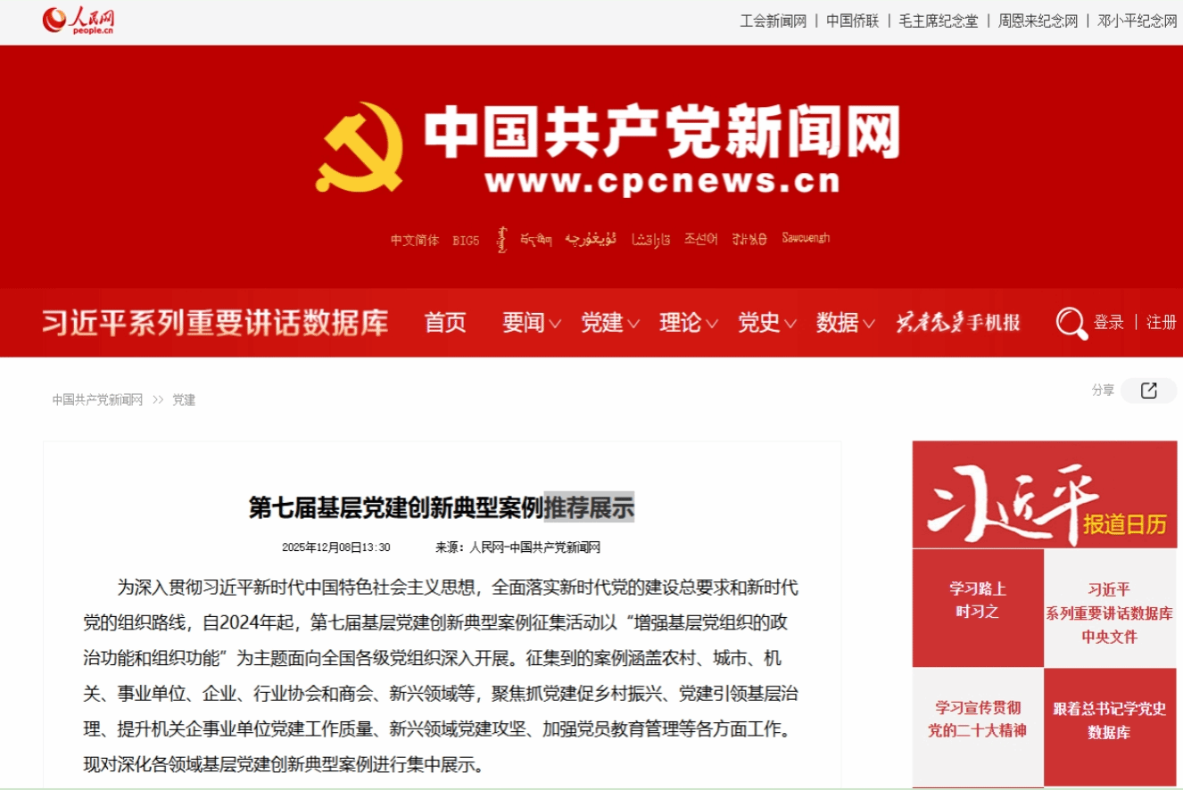 为深入贯彻习近平新时代中国特色社会主义思想,全面落实新时代党的建设总要求和新时代党的组织路线。自2024年起,第七届基层党建创新典型案例征集活动以“增强基层党组织的政治功能和组织功能”为主题面向全国各级党组织深入开展。征集到的案例涵盖农村、城市、机关、事业单位、企业、行业协会和商会、新兴领域等,聚焦抓党建促乡村振兴、党建引领基层治理、提升机关企事业单位党建工作质量、新兴领域党建攻坚、加强党员教育管理等各方面工作。最终从真实性、创新性、实效性、典型性等维度评选出126个优秀案例并集中展示,全国仅有6所高校案例入选,我校是四川省唯一入选高校。