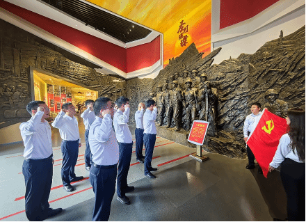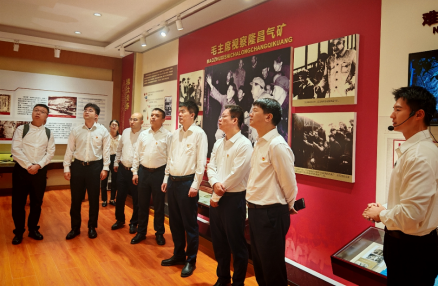 双方还共同前往毛泽东主席视察隆昌气矿纪念馆和四川石油会战史馆,开展联合主题党日活动。在讲解员的引导下,全体党员重温了新中国石油工业艰苦卓绝的创业历程,深刻领略了以“艰苦奋斗、无私奉献”为核心的石油会战文化和光荣传统。在四川石油会战史馆内,面对鲜红党旗,由蒲冠州领誓,全体与会党员庄严举起右拳,重温入党誓词,重忆入党初心,进一步坚定了为能源事业高质量发展贡献力量的决心和信念。