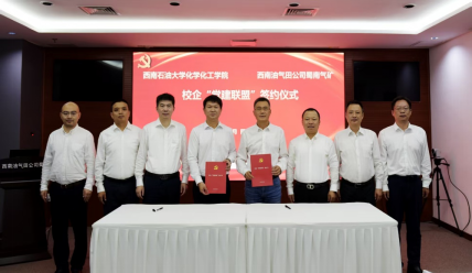 为深入贯彻落实新时代党的建设总要求,构建“资源共享、优势互补、互相促进、共同提高”的党建新格局,9月23日,化学化工学院党委与中石油西南油气田分公司蜀南气矿党委正式签署“党建联盟”协议,并联合开展“传承石油精神,凝聚奋进力量”主题党日活动。学院党委书记蒲冠州,党委副书记、院长段明,蜀南气矿党委书记、工会主席、副矿长杨春,党委副书记、矿长杜强等双方党组织负责人及党员代表共同参与活动。