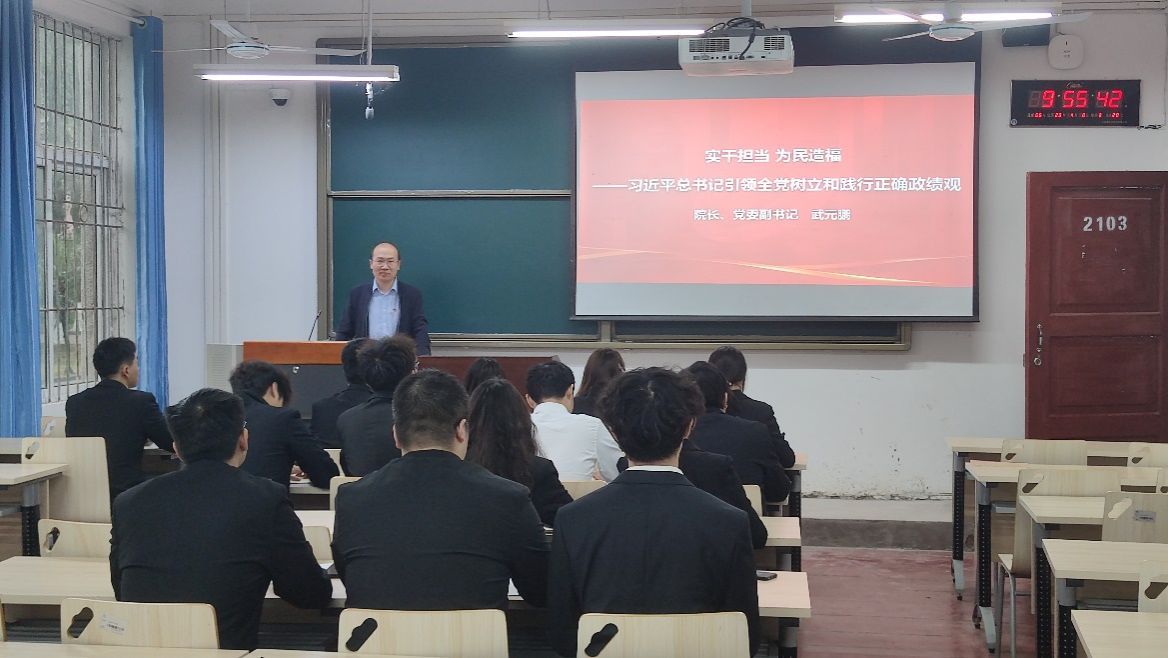 王平在完井楼201会议室,为南充校区全体教职工授课,围绕正确政绩观的内涵、实践路径,结合学院工作实际,引导教职工立足岗位履职尽责、实干担当。武元鹏在第二教学楼2103教室,为全体学生党员讲党课,结合青年成长特点,激励青年党员坚定理想信念,将个人成长融入学院发展和国家建设。