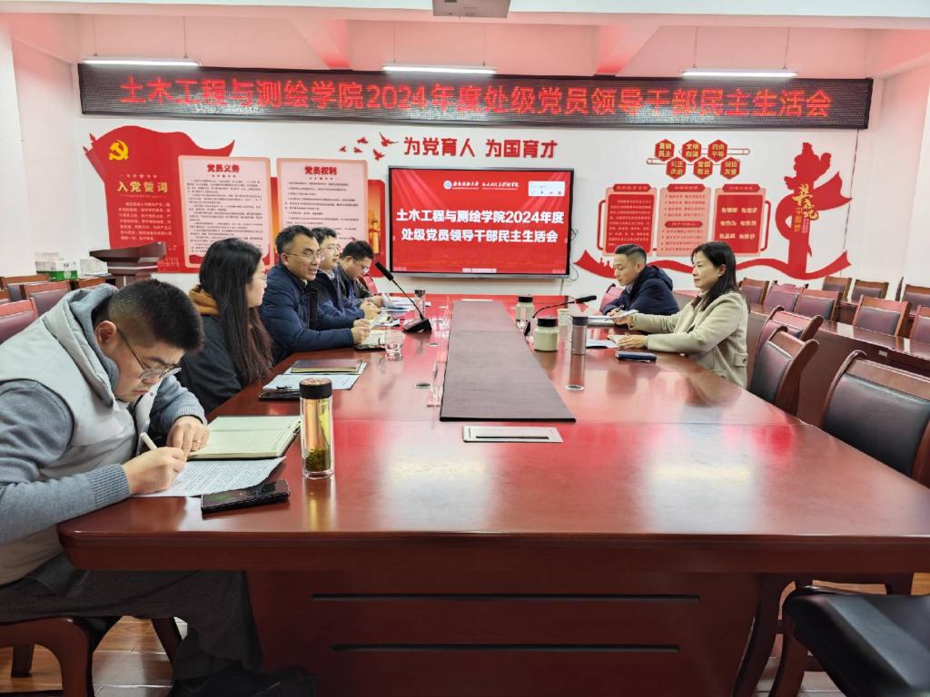 1月10日下午,按照学校党委相关要求,土木工程与测绘学院召开2024年度处级领导干部民主生活会,校督导组、党委常委、宣传部部长兼化工院党委书记张敏、党委宣传部网络思政与舆情信息科副科长任远航到会指导。学院党委领导班子全体成员参加会议,会议由学院党委书记熊俊楠主持。