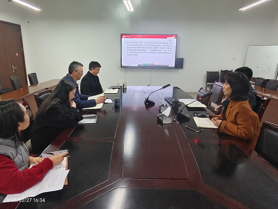 2月27日下午,理学院党委理论学习中心组举行专题学习会,学习习近平总书记重要文章以及《教育强国建设规划纲要(2024-2035年)》(以下简称“《纲要》”)主要内容和全国教育工作会议精神。学院党委委员参加学习,会议由学院党委书记杨雁主持。