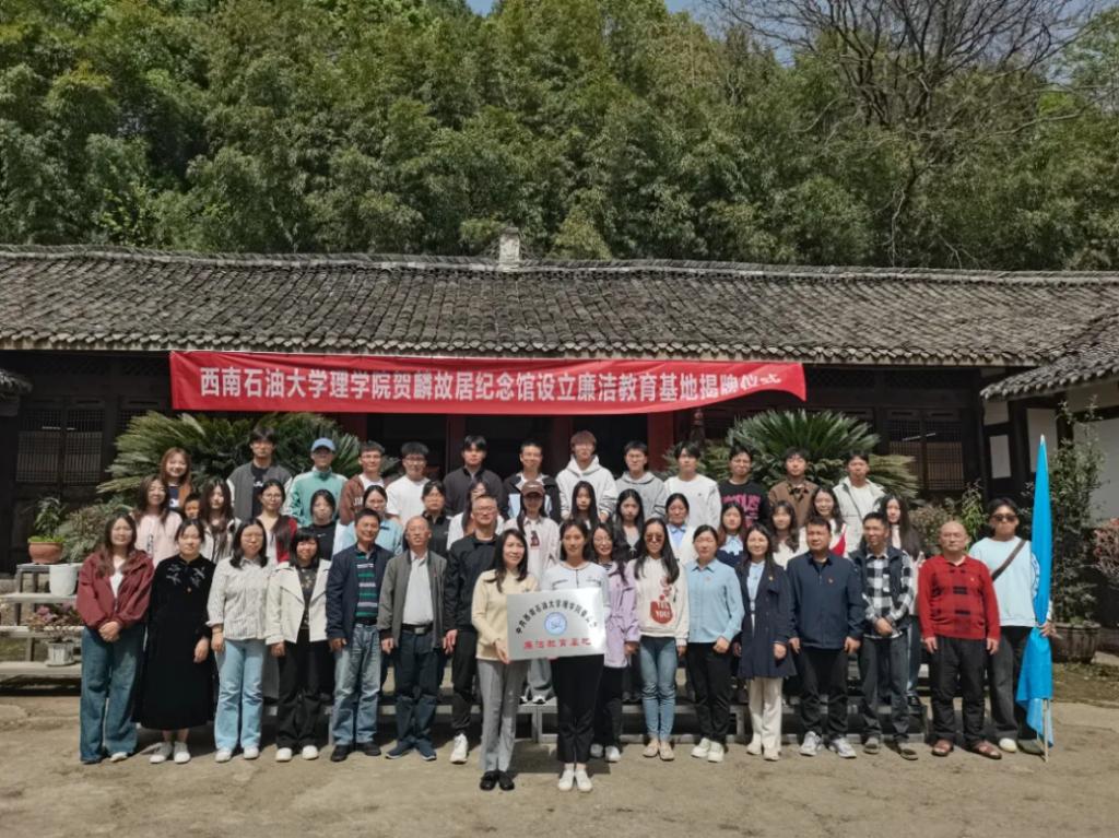 为深入贯彻中央八项规定精神学习教育,扎实推进廉洁文化建设,2025年4月13日,西南石油大学理学院党委书记杨雁率教师党员与理学院2025年春季学期入党积极分子培训班学员一行赴贺麟故居纪念馆开展专题教育活动,并举行“廉洁教育基地”挂牌仪式。
