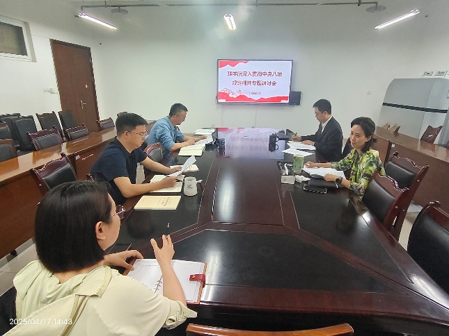 4月17日下午,学院党委在明理楼C302B开展深入贯彻中央八项规定精神学习教育集中研讨,学院班子成员、党委委员参加会议。会议由学院党委书记杨雁主持。