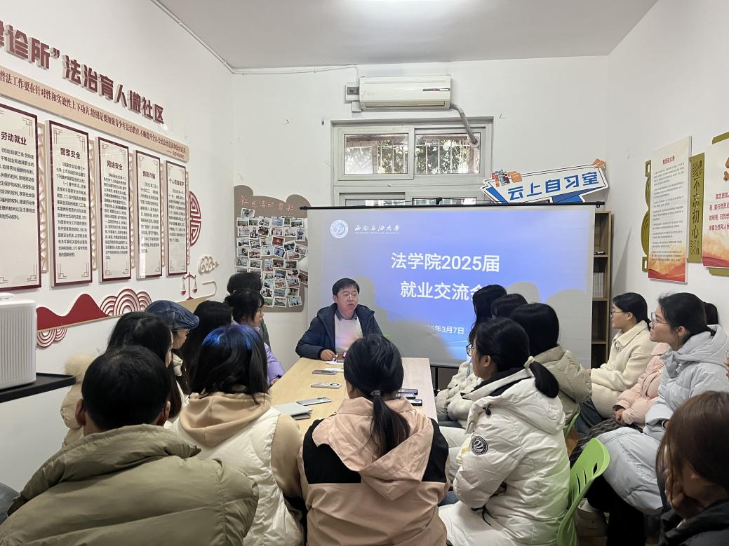 图五:法学院党委副书记、纪委书记于百江与25届毕业生开展就业交流会