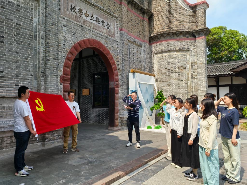 教育基地包含“红色星火、统战史话、走向共和、城厢印记”四个主题版块。党员同志们在讲解员的带领下,怀着敬畏之心,走进彭家珍大将军专祠纪念馆,聆听彭家珍先烈年少有为、壮烈殉国的故事。讲解员告诉大家,在辛亥革命紧急关头,为配合孙中山六路北伐,彭家珍炸死清王朝宗室首领良弼,自己当场壮烈殉国,时年仅23岁。他为争取革命胜利而慷慨献身的大无畏精神和英勇气概,激励了一代又一代人为革命、建设和改革不懈奋斗。随后,全体党员在党旗下重温了入党誓词,铿锵有力的宣誓声震撼人心。大家还参观了邓公楼、抗日阵亡将士纪念碑、金堂县立中学校旧址、绣川书院等点位,仁人志士的爱国情怀以及保家卫国的牺牲精神令人倍受鼓舞。