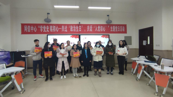 特殊的时节,意外的惊喜,激动的心情,这一幕是网信中心直属党支部开展“学党史 铭初心—共过‘政治生日’共话‘入党初心’”主题党日活动的场景,12月9日下午,中心直属党支部以“六个一”为依托,为秋季时期入党的17名党员同志集体过“政治生日”。