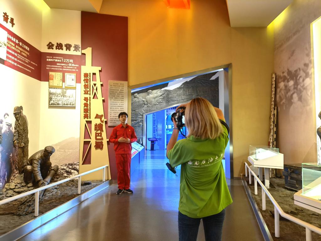 实践队正在四川石油会战史馆拍摄短视频