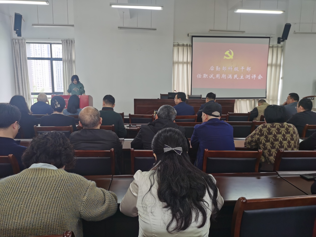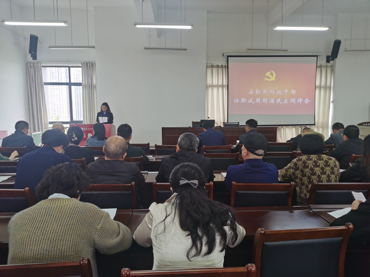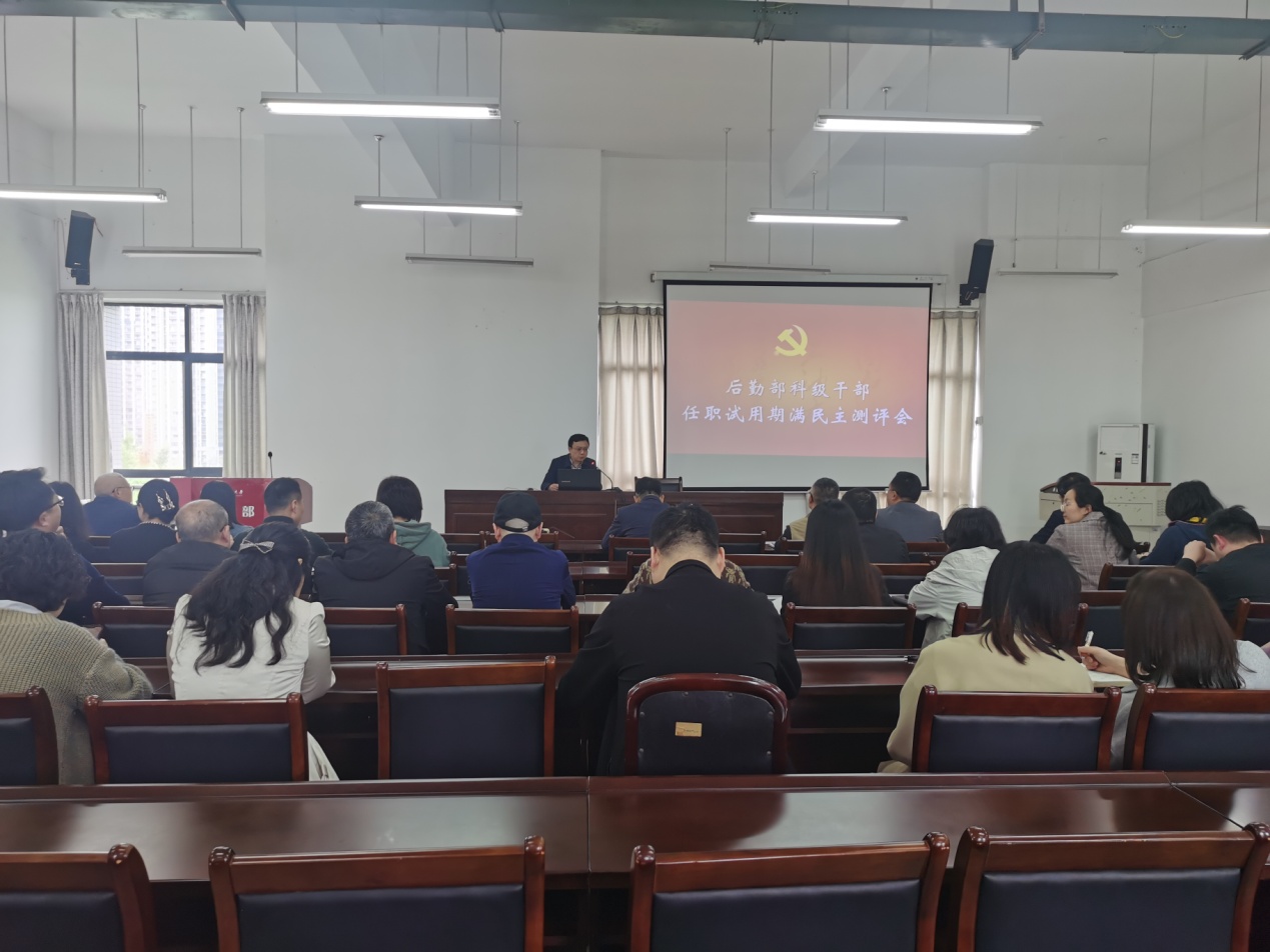 4月9日,后勤部在后勤楼515会议室召开科级干部任职试用期满民主测评会。后勤部党委书记邓洪波主持会议,后勤部领导班子成员、科级干部及各中心一线骨干参加会议。