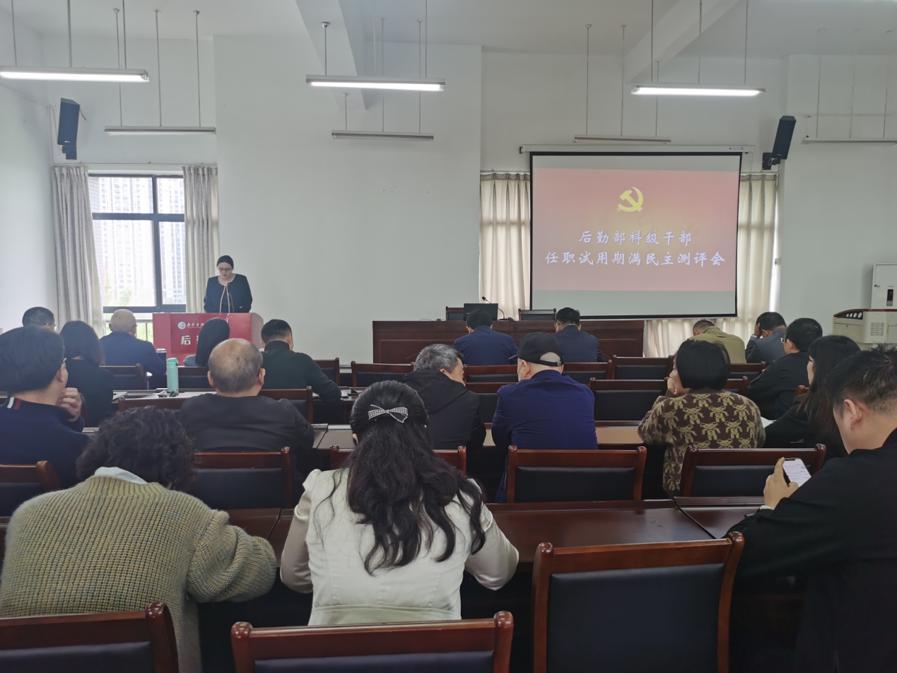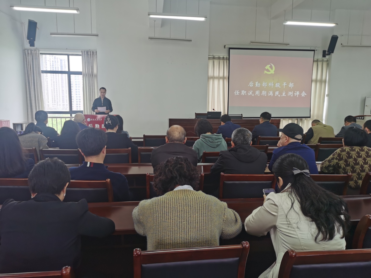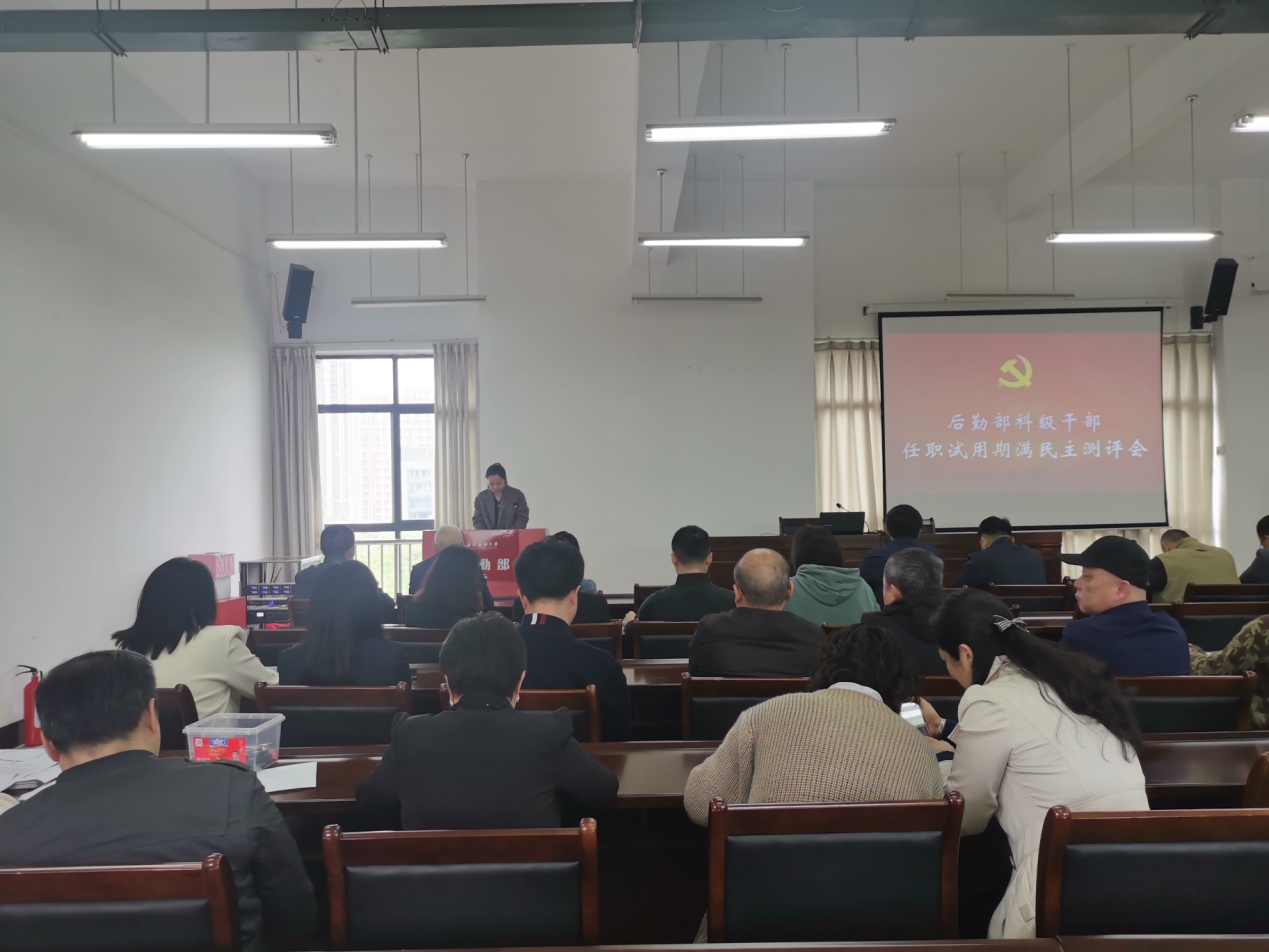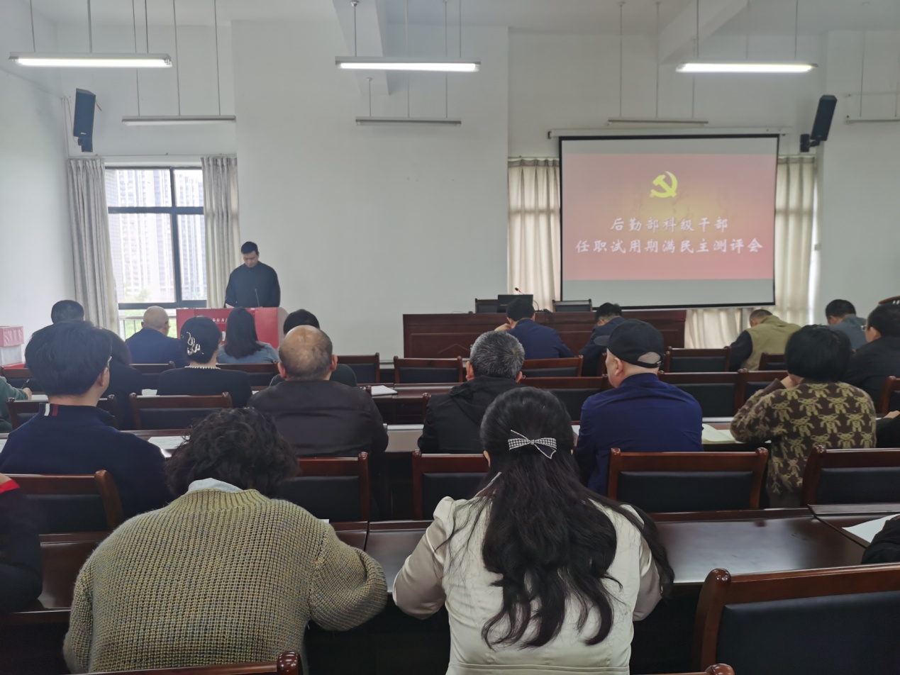 4月9日,后勤部在后勤楼515会议室召开科级干部任职试用期满民主测评会。后勤部党委书记邓洪波主持会议,后勤部领导班子成员、科级干部及各中心一线骨干参加会议。