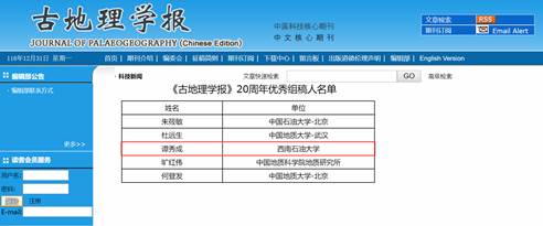 谭秀成教授主要从事沉积学和储层地质学的科研与教学工作。长期担任《古地理学报》、《石油勘探与开发》等期刊编委。目前任国内外10余家学术期刊审稿人。