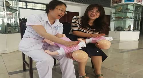 校医院指导“海氏急救法”(婴儿急救)练习