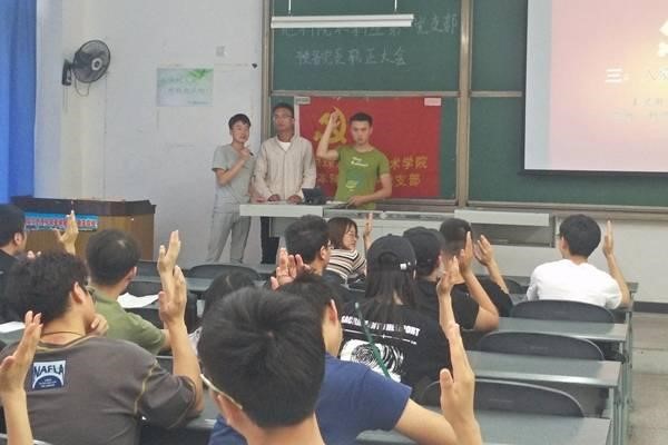 下午四点半,在明辨楼C108,支部大正式开始,全体起立奏唱国歌。首先是论支部党员转正,王昱超等7位预备党员汇报了一年来的有关情况,重点在对党的认识、学习工作以及一年考察期内的表现等方面进行了详细汇报,支部成员认真听取了汇报,并提问、讨论。汇报结束后,7名转正申请人暂时离场,支部全体正式党员进行表决。在热烈的掌声中,会议通过了《关于发展王昱超等7位同志为中共正式党员的决议》。王昱超等7名同志顺利转正,成为中共正式党员。
