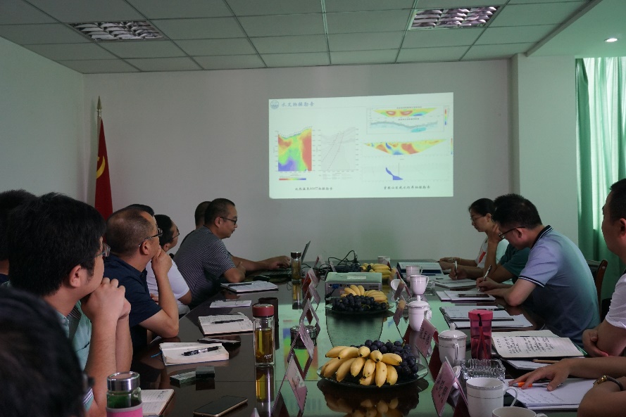 省地矿局物探队队长周宁首先介绍了物探队的概况,该单位的业务领域涵盖地球物理勘查、地球化学勘查、城市地下空间调查、地质灾害防治、文化旅游地质、生态环境治理等多个领域。随后,省地矿局物探队下属物探院总工余舟就传统地质物探勘查、水文物探勘查、环境物探勘查以及新形势下的物探勘查进行了相关介绍。四川省西南大地工程物探有限公司总工徐文刚就该公司在水工环业务方面的相关情况进行了介绍,并以某地区地质环境恢复治理为例,详细介绍了工程项目开展的具体情况。