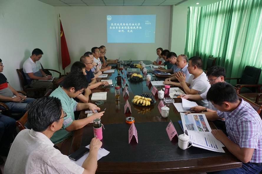 6月28日,西南石油大学地球科学与技术学院党委书记朱江、副院长赵晓明等一行7人前往四川省地质矿产勘查开发局物探队进行访问交流,省地矿局物探队队长周宁、副队长柳维君、总工程师林高原等11人进行了接待。