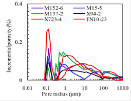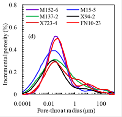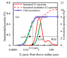 (c)核磁T2谱 (d)基于核磁共振的孔喉分布