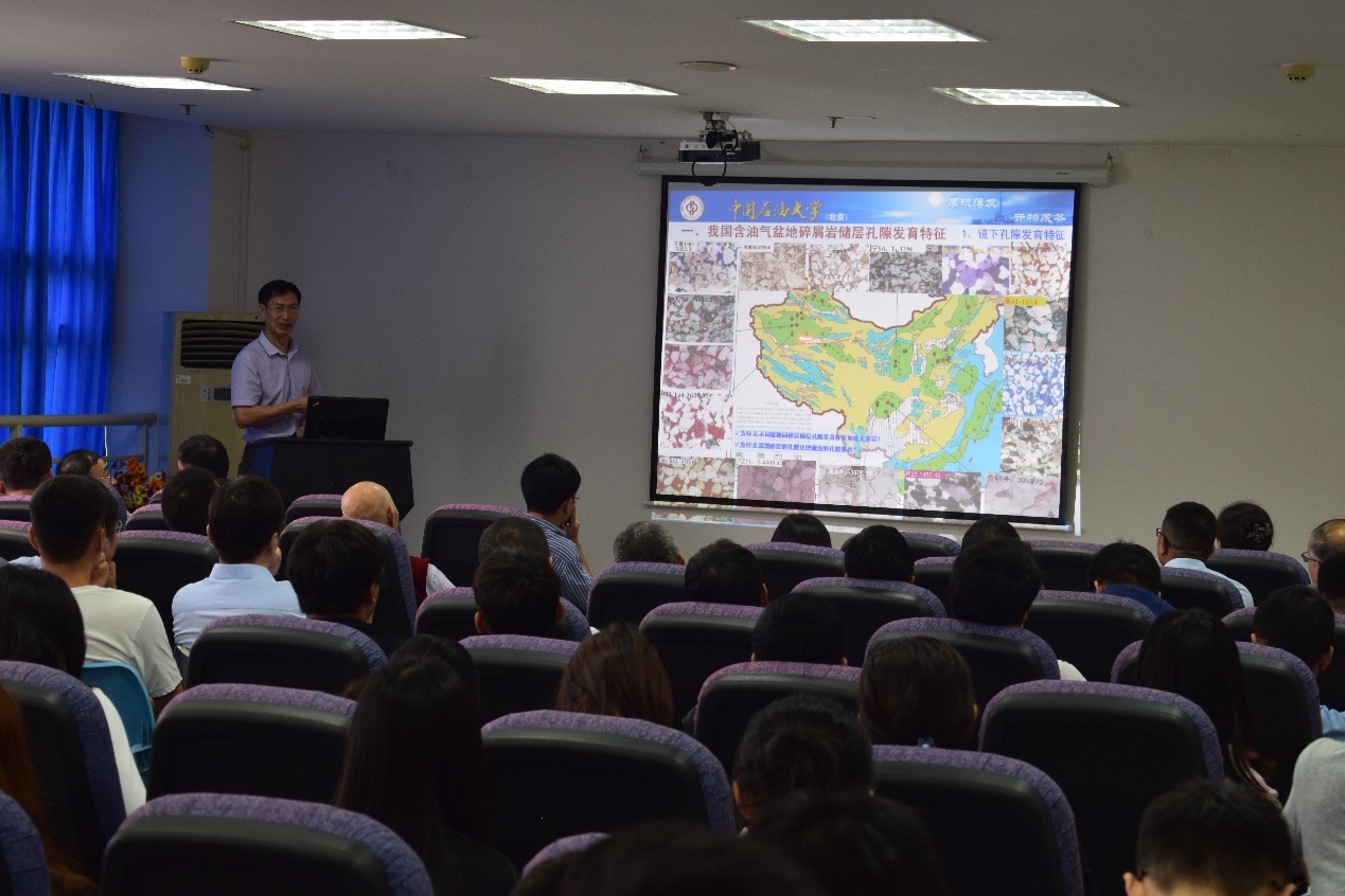 随后,中石油勘探开发研究院的董大忠教授开始了本次会议的第一个报告,题目是“中国的页岩革命”。董教授主要对我国页岩气的发展历程进行了讲解,详细地阐述了我国页岩气开发从无到有,从发展到壮大的过程,用生动的语言形象的展现了我国页岩油气领域这几十年的发展轨迹。紧接着,来自中国石油地质专委会的张湘宁教授作题为“美国鹰滩页岩油气勘探开发新进展”的报告,张教授以美国页岩油气开发为例,向参会人员讲解了国外油气行业的主要技术特点,他表示对于国外油气行业的先进技术要积极学习,同时也要摸索和创新我国自身特色的页岩油气勘探开发技术。会议进行到一半,中国石油大学(北京)钟大康教授和中石油塔里木油田原总地质师王招明教授分别进行了题为“中国含油气盆地碎屑岩储层孔隙发育控制因素与演化模式”和“埃塞俄比亚欧加根盆地地质认识及勘探前景”的学术报告,充分展示了中国碎屑岩油气储层时空分布规律和欧加根盆地油气勘探重大进展。会议最后,中石油西南油气田的王世谦教授以《四十年油气地质教育与科研问题及思考》为题,向大家提出了自身对油气地质人才培养关键过程的理解,并就科学研究过程中时刻注意的关键问题进行了梳理总结,以此告诫研究生同学一定要脚踏实地的学习专业知识,坚决杜绝学术不端行为,为未来能够顺利走向职场做好充分准备。
