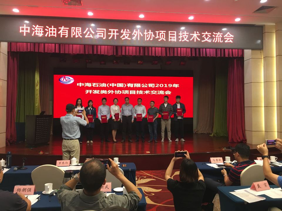 2019年9月26日至27日,我院廖明光教授科研团队被中海油湛江分公司推荐参加了中海油有限公司在北京河南大厦举行的开发外协项目技术交流会,并作了题为“低渗储层复杂油水关系测井识别技术及其在南海西部海域中的应用”技术交流报告,被评为中海油有限公司优秀开发外协项目奖。