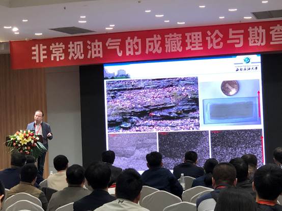 廖纪佳老师在“非常规油气的成藏理论与勘查技术”分会场作报告