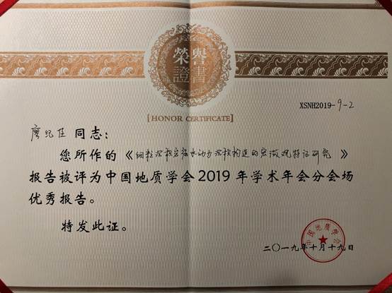 西南石油大学地科院胡明教授等部分师生参加了此次会议并在分会场作报告。廖纪佳老师在“非常规油气的成藏理论与勘查技术”分会场作了题为《细粒沉积岩强水动力沉积构造的宏微观特征研究》的报告,并被评选为分会场优秀报告,胡明教授作了题为《工程教育认证对培养新时代地质类人才意义之我见》的报告;博士研究生赵宁作了题为《四川盆地火山岩气藏勘探重大突破:YT1风险探井火山岩测井综合评价》的报告,博士研究生王小芳作了题为《受火山喷发影响的微生物碳酸盐岩的宏微观特征》的报告,并获得优秀论文奖。
