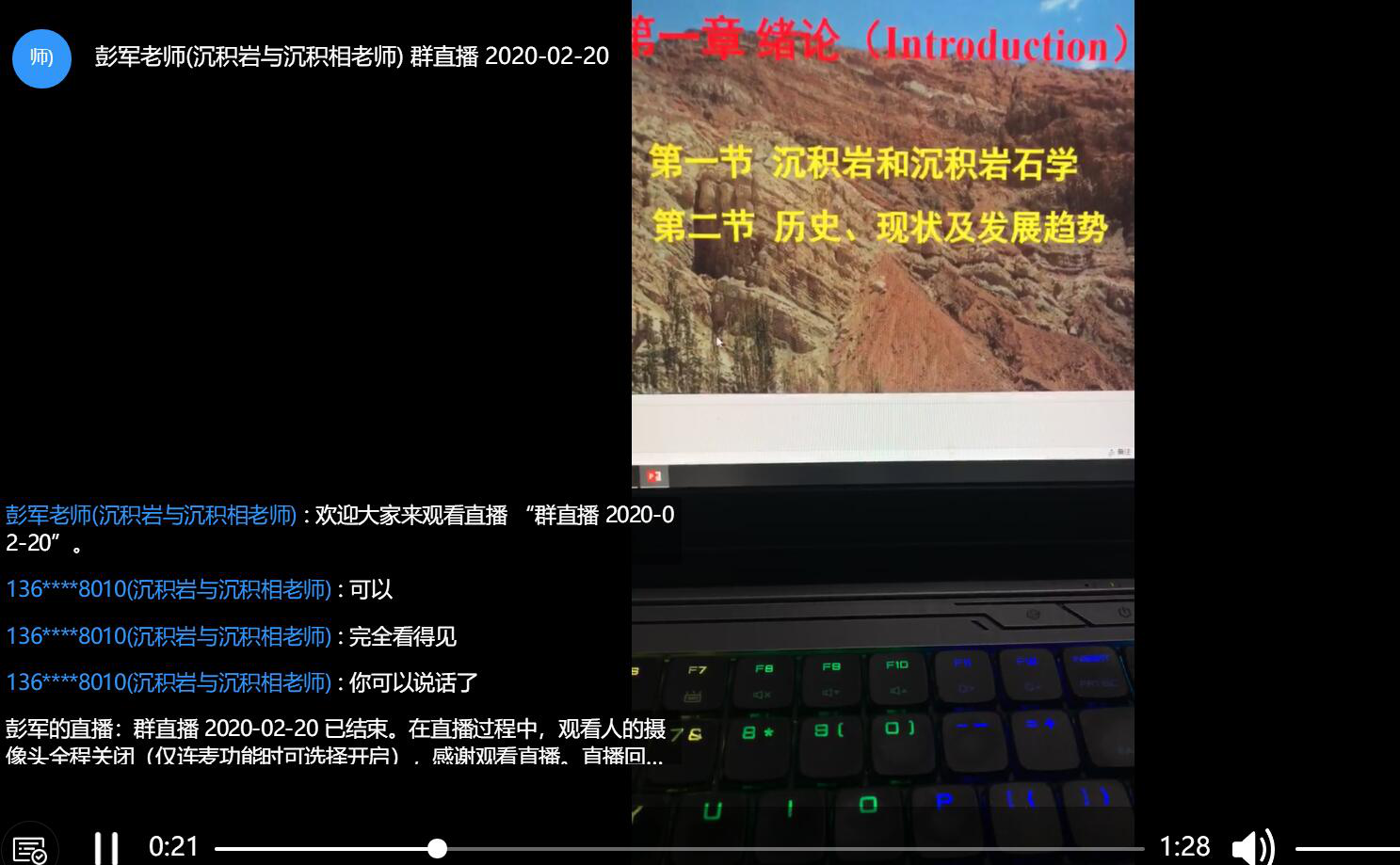 沉积岩与沉积相课程的课程组试直播调试