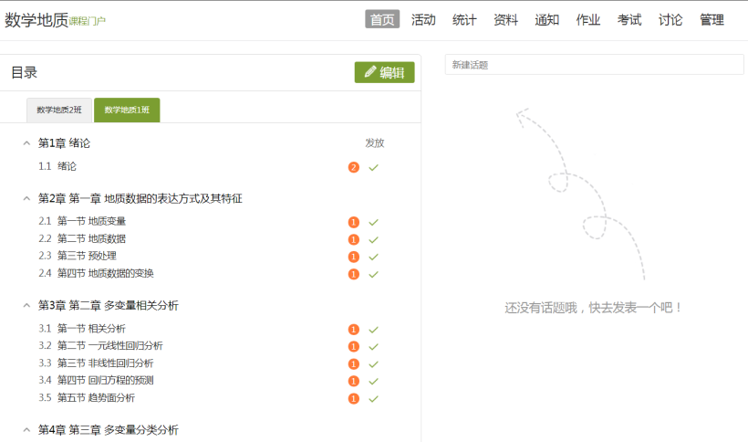 《数学地质》教学团队丁熊和陈雷2位老师经讨论,该课程采取学习通录课,视频+PPT,学生在线学习,教师按时在QQ群里布置作业+答疑的方式学习。