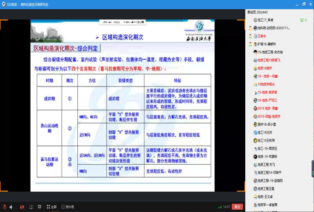 面对严峻的疫情防控形势,为最大限度减少疫情对研究生教育工作的影响,按照学校疫情防控工作要求,西南石油大学地科院研究生充分利用网络资源开展云端学习交流。