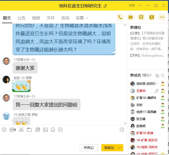 心相聚,云战疫,为提高研究生的学术能力,促进学科建设,地科院研究生会借助QQ社交平台开展博士线上论坛系列讲座。为确保线上交流平台的正常运行,使论坛更高效更有质量地进行,工作人员反复在QQ群里进行了语言调试和效果评估,遇到问题及时反馈,博士论坛有秩序且流畅地开展。近期在地科院在读全日制QQ群已举办的两期博士论坛受到同学们的高度赞扬,共计400余名研究生参与。