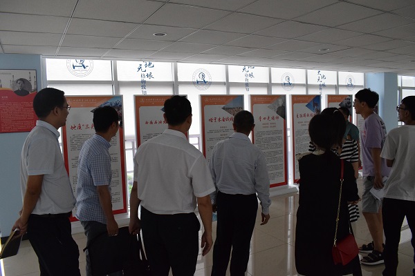 报告会结束后,地科院部分领导和教师陪同江同文教授参观我院在明辨楼三楼的地质精神长廊,并介绍我院近年来对学生的素质教育和对地质“三光”精神、塔里木会战精神、李四光精神等优秀地质人精神的传承和发展。江同文教授表示,我们石大人走到哪里都不会忘记这些传承多年的精神,是这种精神激励着一代代人扎根行业,不断进取。最后,地科院研究生会的同学对江同文教授进行了采访,江教授耐心回答并对地科院全体同学提出建议:希望同学们一定要努力学习,真正学到知识,学会知识,并运用到祖国的发展建设中去,不负韶华。