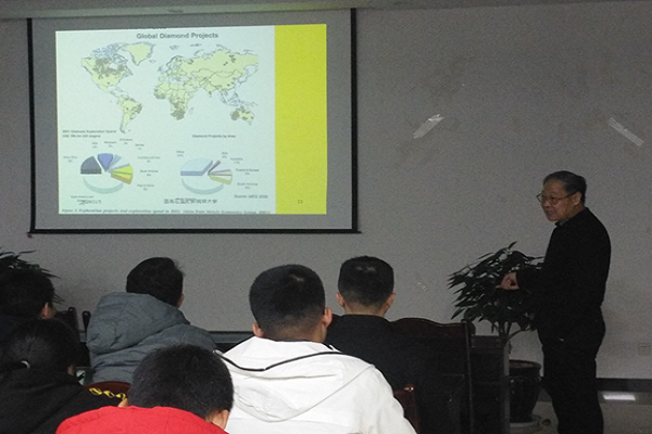 赵宝金教授是著名的矿床学家,环境学家以及水化学家。此次讲座赵宝金教授主要介绍了金刚石成矿类型、大地构造单元及实例。讲座伊始,赵教授先简要介绍南非地质及矿产和金刚石矿及其主要产地。讲述了大地构造背景和金刚石矿的类型,并着重讲解了金刚石成矿组分——主要分为原生矿和砂矿两大类型,同时赵教授以非洲金伯利岩为实例仔细的解释了其对大地构造的影响。最后赵教授又介绍了在澳大利亚西澳地区发现的含金刚石的钾镁煌斑岩。他表示,作为金刚石的另一类母岩钾镁煌斑岩产出了世界上绝大多数的彩色钻石,这些原生钻石经过工匠的细心打磨最终成为了珍贵的首饰。赵教授讲述的知识新颖有趣,引起了同学们的广泛讨论和积极提问。他对同学们提出的问题都耐心解答,并提出了新的问题以供大家讨论与研究。在历经两个小时的精彩讲授后,报告会在同学们经久不息的掌声中圆满结束。
