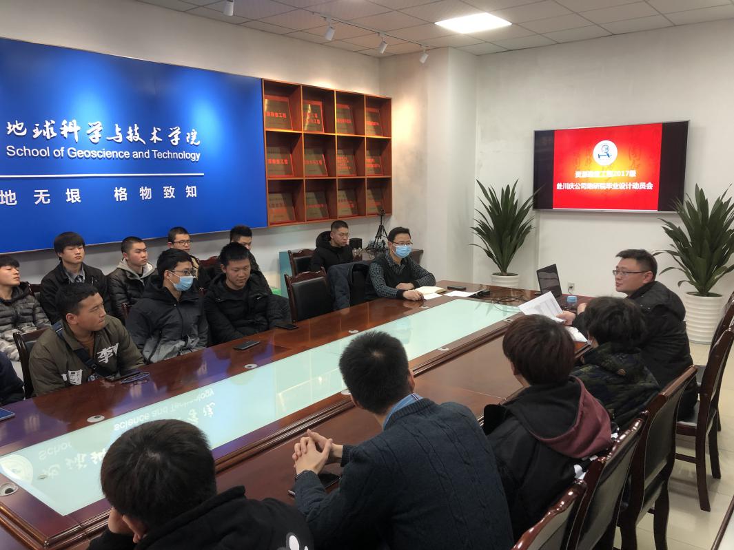 为更好地完成本科毕业设计工作和提高本科毕业设计质量,与中石油川庆公司地研院有机结合,学院于12月22日下午在明辨楼A302召开了地科院赴中石油川庆公司地研院本科毕业设计动员会。学院副院长范翔宇、教学办公室主任张俊峰、油气地质教研室丁熊老师出席了本次动员会。