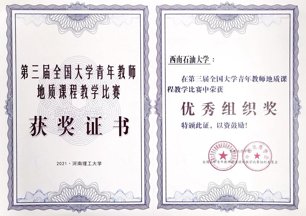 西南石油大学获第三届全国大学青年教师地质课程教学比赛优秀组织奖